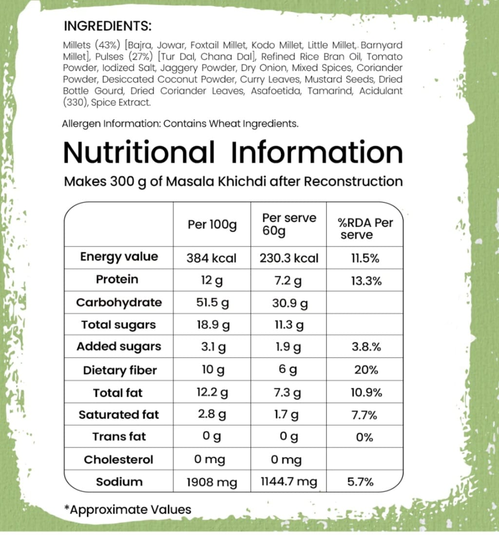 Enjoy the classic flavors of Southern India with our Millet Sambar Meal. A meal with the perfect balance of taste and nourishment. USP Rich In Protein | Rich In Dietary Fibre | 45% Millets & 27% Pulses | Serves 1 Weight : 10 x 100g Packaging type : Single serve pillow pouch